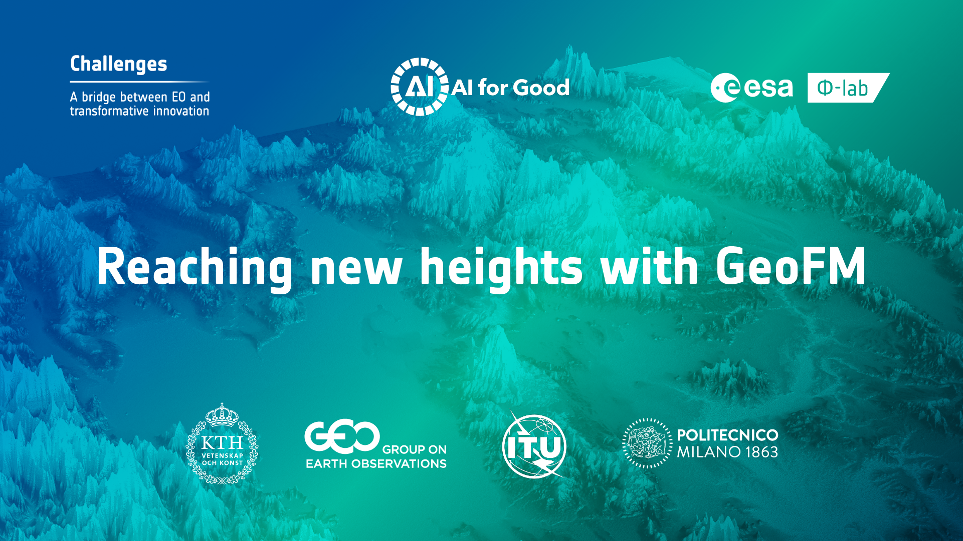 To tackle this issue, for the first time ever, ESA Φ-lab Challenges partners with the International Telecommunication Union (ITU) and AI for Good, to present a new instance in the GeoAI series. The joint "Reaching new heights with GeoFM" Challenge, marks an important step toward creating a global mapping of surface heights and land‑cover classes using only open‑access satellite imagery.